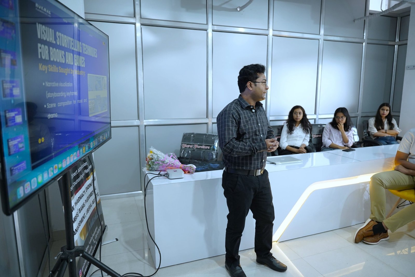 One of the most anticipated moments of the workshop was an engaging session by Mr. Deepak Kumar, Chief Operating Officer at Alien Paradox Technologies LLP. Through live demonstrations and insightful commentary, Mr. Kumar provided an immersive exploration of the evolution and future of digital art, animation, game development, and book design. His practical insights and inspiring approach captivated the audience and ignited new aspirations among budding digital creators.